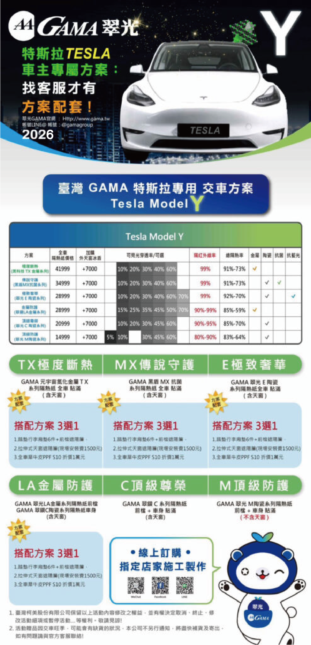 2026,本專案價格依GAMA官網特斯拉車主TESLA專案價公告價格為準,訂購刷卡方案請與GAMA小編聯繫.